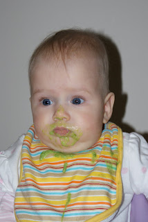 Bronwyn really seems to like just about anything we put in her mouth. She grabs the spoon to chew on and suck off of and brings her mouth right to the spoon in excitment. She also screams if I spend too much time feeding her sister in between bites!