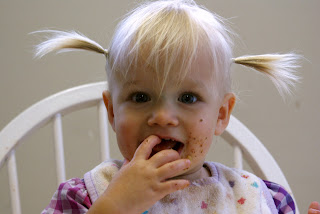 984. Toddler girls in their first pigtails