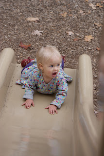 955. Goind down big slides backward all by themselves at the park